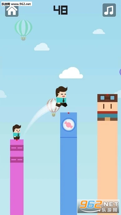 跳上天:小人穿梭高楼林立之间,一步一步爬升,越跳越高。比比看,谁能跳的更高?