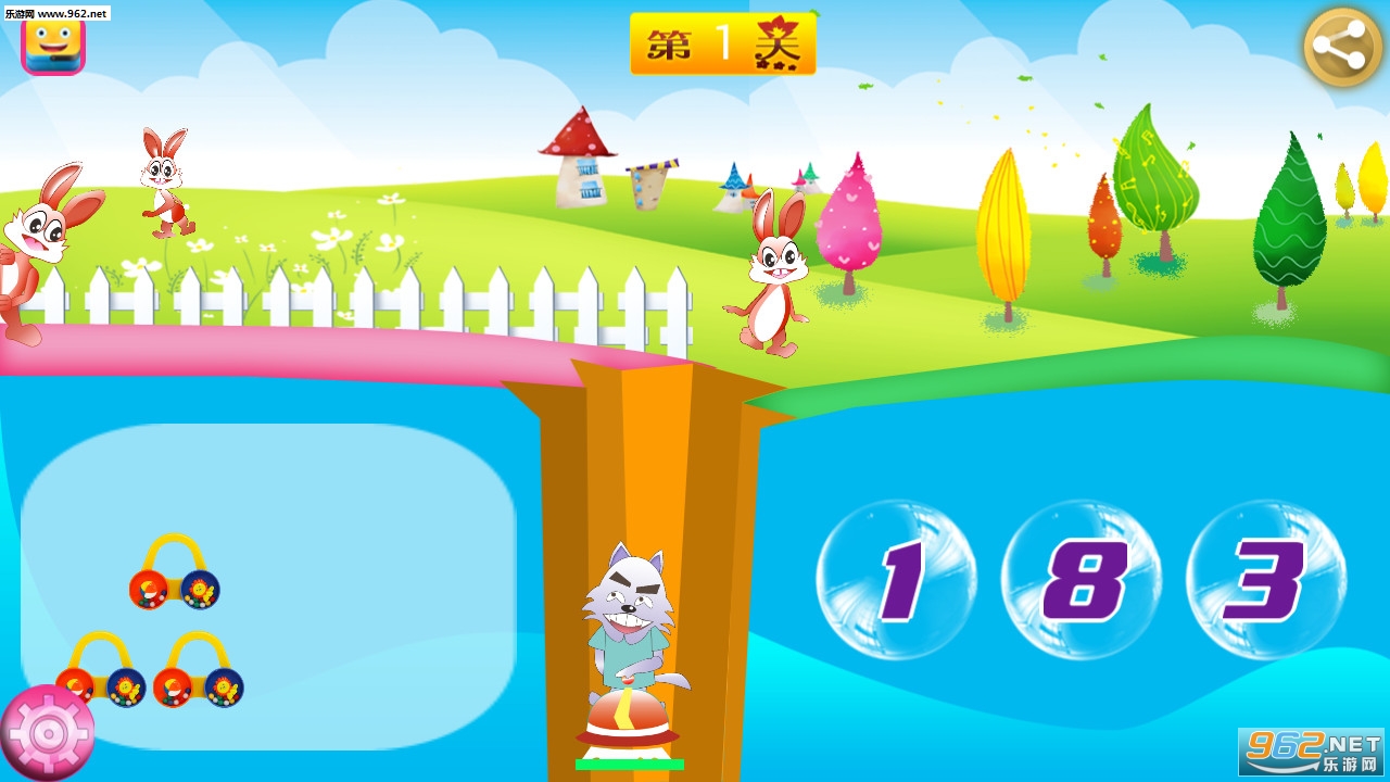 非常不错的学习数数的软件,有趣的小游戏,宝宝们通过选择对的数字来让小兔子攻击大灰狼,让大灰狼回到原来的位置,如果大灰狼到达顶端游戏就失败了,喜欢的朋友可以下载试试。