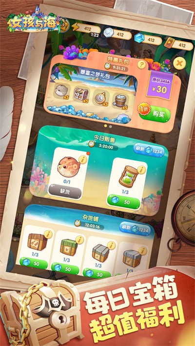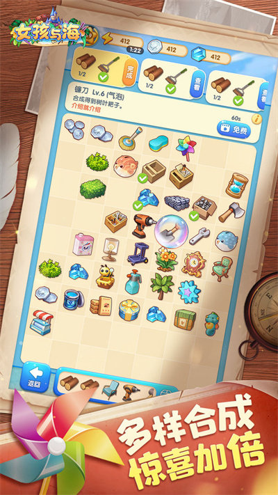 女孩与海是融合了消除元素的经营手游,设计了众多的合成玩法,体验到久违的消消乐过关冒险世界的完美乐趣,你可以随意的装扮自己小屋,解锁不同的场景区域享受更多乐趣。