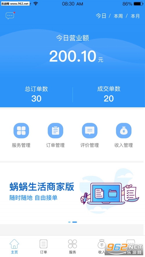 蜗蜗生活商家版APP正式上线啦!服务商能在线操作店铺管理、商品管理、订单管理、商家收入管理等诸多功能,实现智能化管理,大大提高工作效率,降低运营成本,随时随地,自由接单。