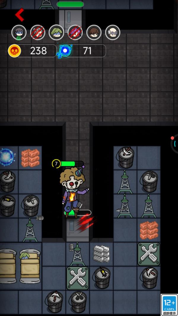 3、游戏还融入了竞技元素,玩家可以扮演小丑追杀平民,或者扮演平民躲避小丑的追捕。
