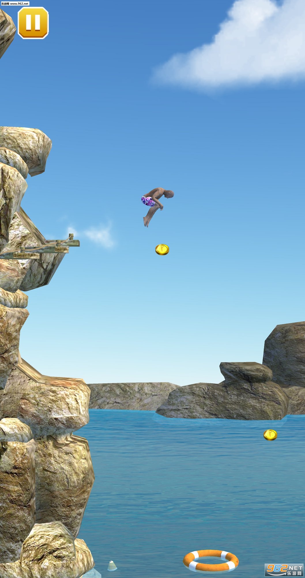 在一个海滩旁边有着一个神奇的悬崖,这里是跳水爱好者们的圣地。在这里你可以进行疯狂的跳水表演。选择你的角色,选取惊人的跳水动作,然后根据任务的要求来完成入水动作吧!空中的旋转和入水的动作非常重要,动作不完美可是会被判重来的哦。