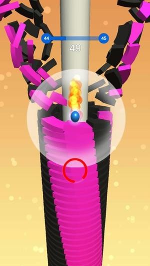 一款趣味性十足的跳跃题材休闲游戏,连续的螺旋轨道挑战你的极限反应的能力,注意每一次跳跃时机的把握,向上来无尽的弹跳,面对不同的台阶可以将球的颜色随机的变化。
