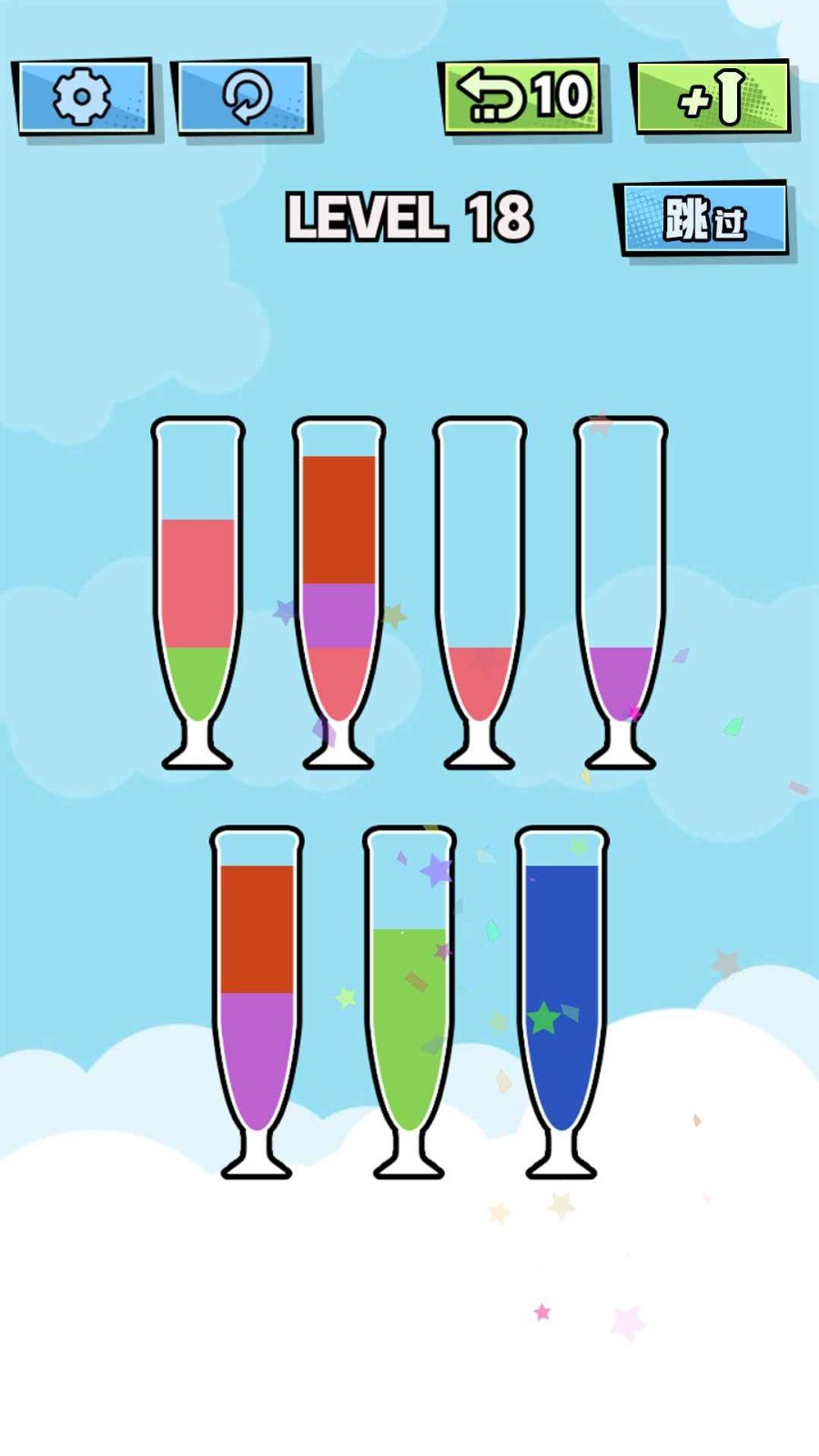 4、所有相同颜色的液体都在同一玻璃杯中,即可过关!