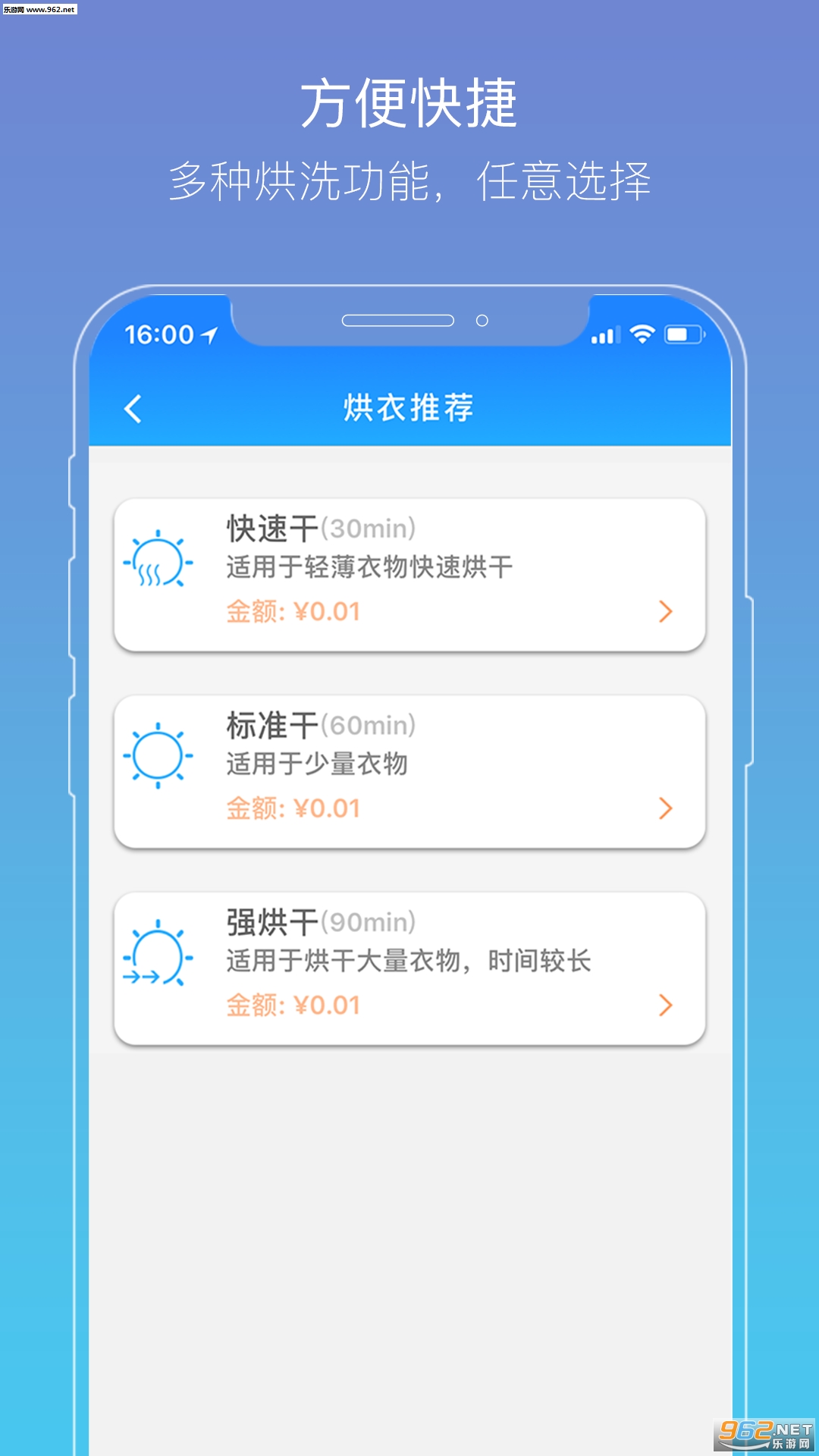 【操作简易】 扫码即用,根据衣物量自行选择相应的烘洗功能,简单方便。