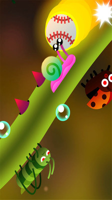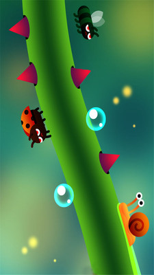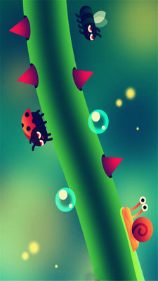 1、在植物根茎上爬行的蜗牛在遇到障碍尖刺时,需要单击屏幕切换躲避至安全的一面继续爬行;