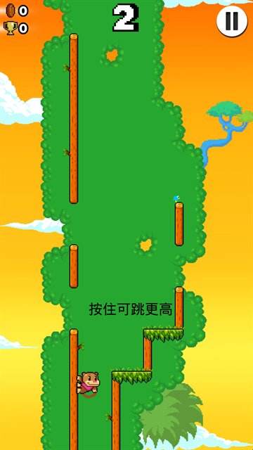 2、随后按住屏幕时间长短,可以决定跳跃的高度。