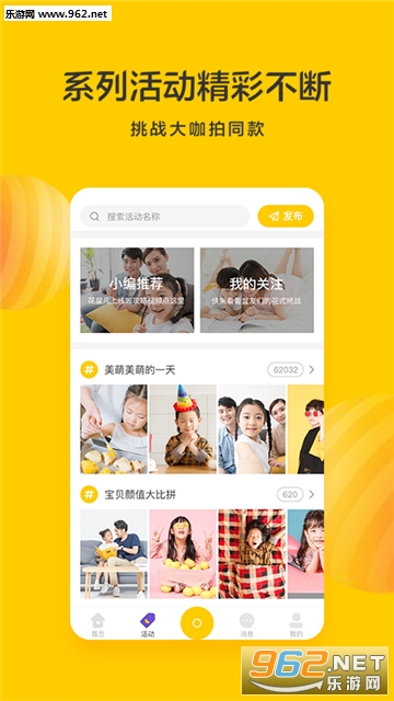 为家长们打造的亲子视频APP,可以和孩子一起观看精彩的视频,也可以拍摄自己的萌娃,还有各种好玩的亲子活动,记录孩子的成长记忆,促进亲子关系的发展!