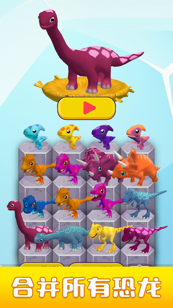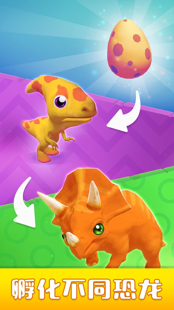 4、需要通过合并,将两个恐龙合并并创造一个新品种,让你的恐龙奔跑和成长。