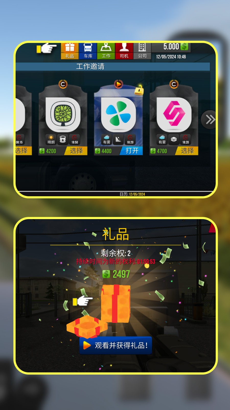 1.完成任务可积累资金,用于在车库购买或升级卡车;