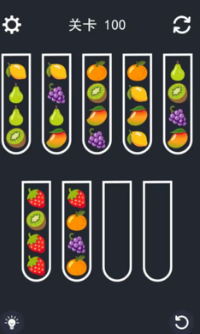 水果排序是款风靡此时的趣味益智游戏,游戏的主要玩法就是将水果进行排序,游戏中有非常丰富的关卡。游戏规则非常简单。玩家需要根据颜色对玻璃杯中的水果进行分类,这样才能将不同种类的水果聚集在同一个玻璃杯中。