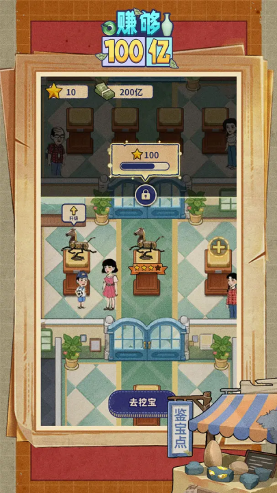 赚够100亿是一款很好玩的模拟经营类游戏。玩家在游戏中需要经营父母留下的店子,立志要赚够100亿,让玩家体验从一无所有到腰缠万贯的过程。玩家可以通过鉴古董,挖宝贝等各种方式,一步步走向暴富的道路。喜欢的玩家赶紧来试试吧!