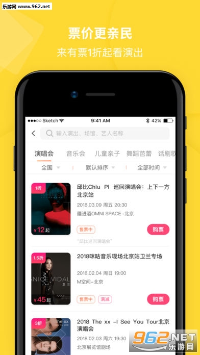 一款不错的购票平台APP,用户可以选择不同的城市,或者各种类型的演出,来购买自己需要的门票,而且还有许多优惠活动,可以用实惠的价格买到需要的票!