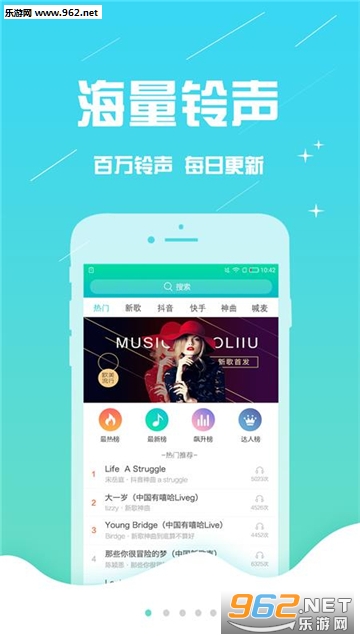 【天天有新铃】紧贴潮流,收纳时下流行、好玩的歌曲铃声,还有抢麦、搞笑、影视、DJ、动漫、短信铃声,乐趣无限!