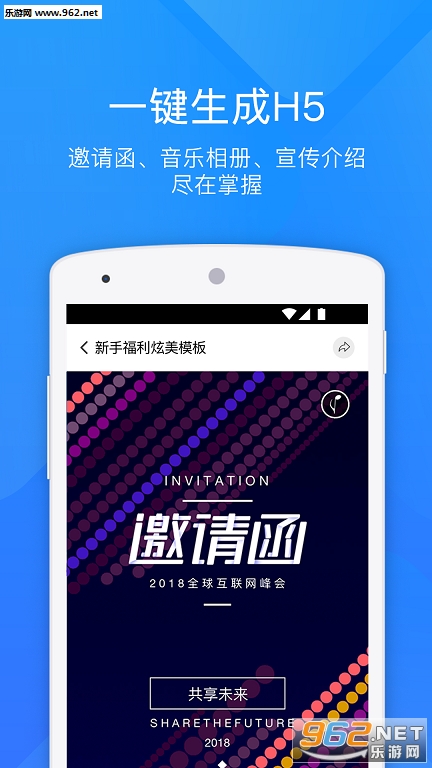 易企秀拥有海量创意模板及正版素材,是一款致力于帮助中小企业实现便捷有效的移动自营销服务平台。制作简便,支持企业和个人一键生成创意H5,可多渠道分享。随时做,即时传,刷爆朋友圈。