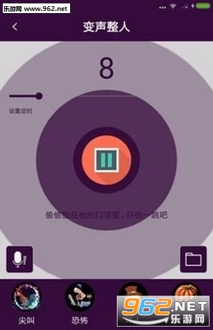 4) 变声整人:用于把变声的音频用于恶搞朋友,也可以选择系统预设的音频(尖叫,恐怖,吓人,女鬼叫,屁声1,屁声2,屁声3,屁声4),并设置播放的时间。