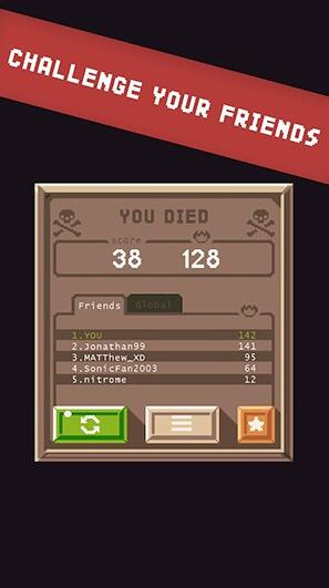 滑动屏幕控制角色跳跃到更高的平台上去,随着黑暗不断向上侵蚀,你能坚持多久!