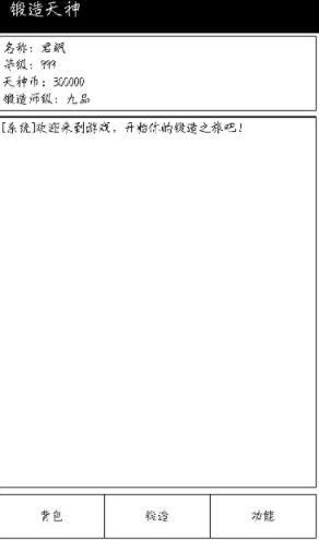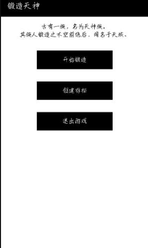 这是一个独立制作的文字类型的RPG游戏,游戏结合了很多小说的背景剧情,游戏很容易让人想到斗路大陆这本小说,讲述的是在某个大陆有一个种族,种族名叫天神族,这个种族的族人的锻造天赋是非常强的,所以游戏的剧情故事有点像斗罗大陆的昊天了,昊天锤。游戏里玩家就是天神组刚刚成年的族人,你进入学院,成为一名锻造大师。