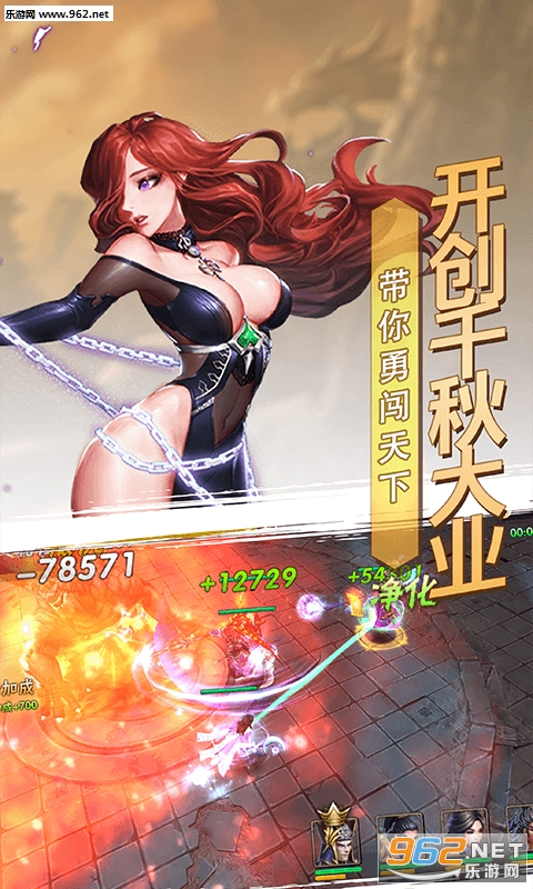 战斗玩法:3D即时动作卡牌,风骚走位、技能打断、风雷水火合体技,绚丽特效,大招秒杀,超强打击快感,挑战极限操作;