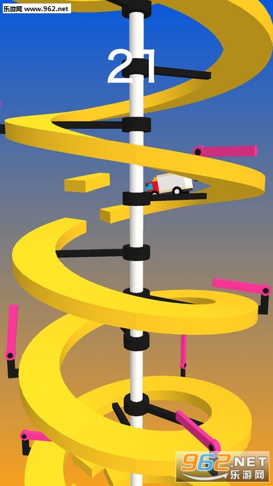 游戏的速度非常的快,刚开始真的会让人有一种摸不清楚头脑的感觉,你必须快速反应,旋转螺旋,帮助你的小汽车躲避各种障碍才行,操作简单,但是挺虐心的,可以下载试试!