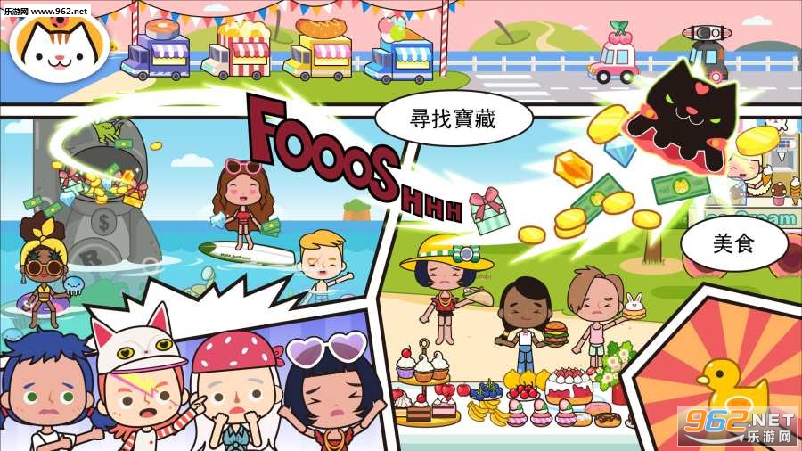 海滩美食街:与朋友在海滩来场沙滩排球,寻找岛上的神秘宝藏,小心美食的诱惑,吃太多会撑坏肚子