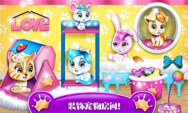 照顾你自己的宠物,给它们化妆装扮,享受我们的宠物屋设计游戏的乐趣!