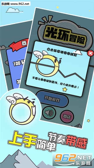 简单有趣的休闲游戏,玩家需要通过点击屏幕使下落的光环人跳起来使光环保持在线路内。