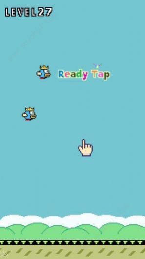 1、在游戏开始后,点击屏幕,要记住是有间歇的点击屏幕,不要让小鸟掉下来。