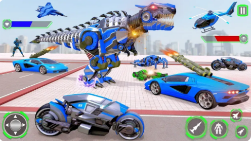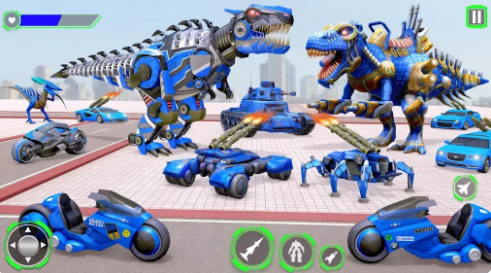在恐龙机器人汽车游戏中享受多机器人战斗的快感,控制无缝变身为汽车的可怕恐龙机器人。用强大的机器人枪武装自己,与敌方机器人进行激烈的一对一战斗。在警察恐龙机器人汽车变形游戏中称霸竞技场和城市景观时,炫耀闪电般的快速反应和精湛的战斗技能。