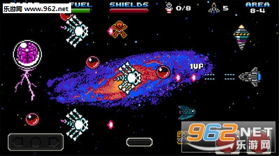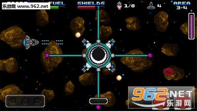 游戏玩法就是画面左下箭头符号控制航天飞机左右转向,右下按钮分别是射击与推进。