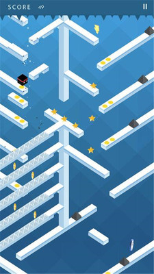 1、每次掉落都会改变一次方块的轨迹,跳跃可能会让你往下很大一段距离,不点击则会按照前进的方向滑动;