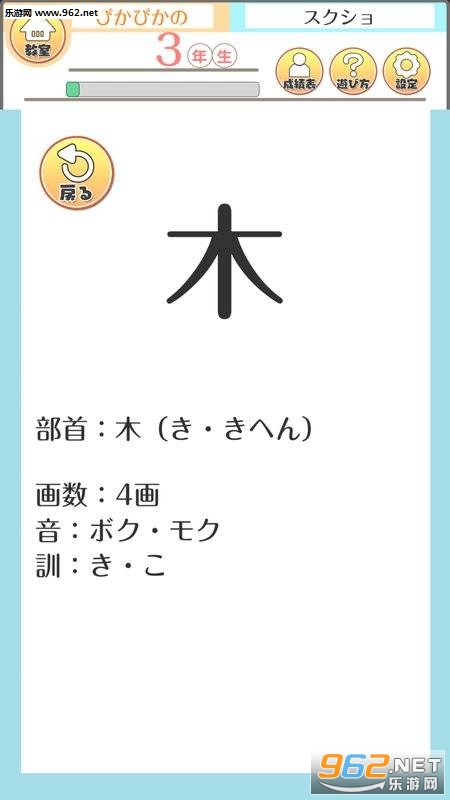 在播放中有新完成的汉字的话,经验值增加,学年也会上升。