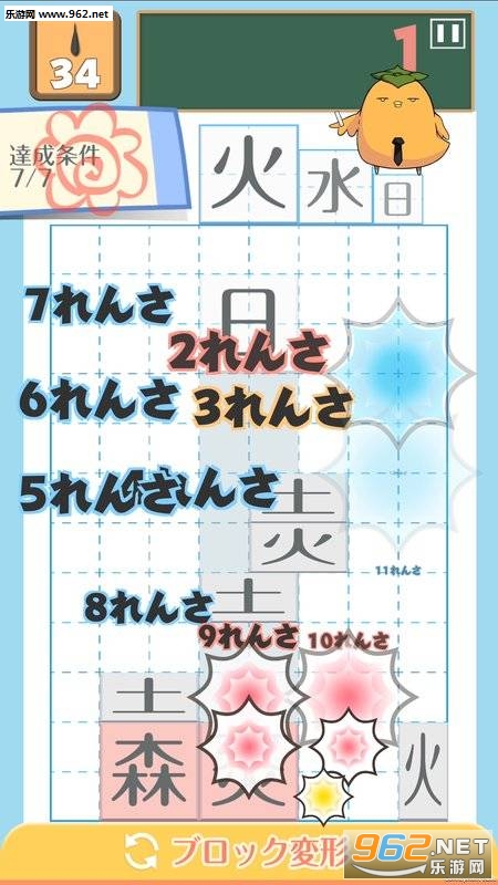 泰斗字是把从上面下下来的汉字块变形后堆积起来,把完成了的汉字用毛巾抹掉,爽快汉字谜题;