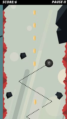 点击改变小球方向,让小球在裂谷里闪转腾挪躲避两边的陷阱,早日冲出裂谷!