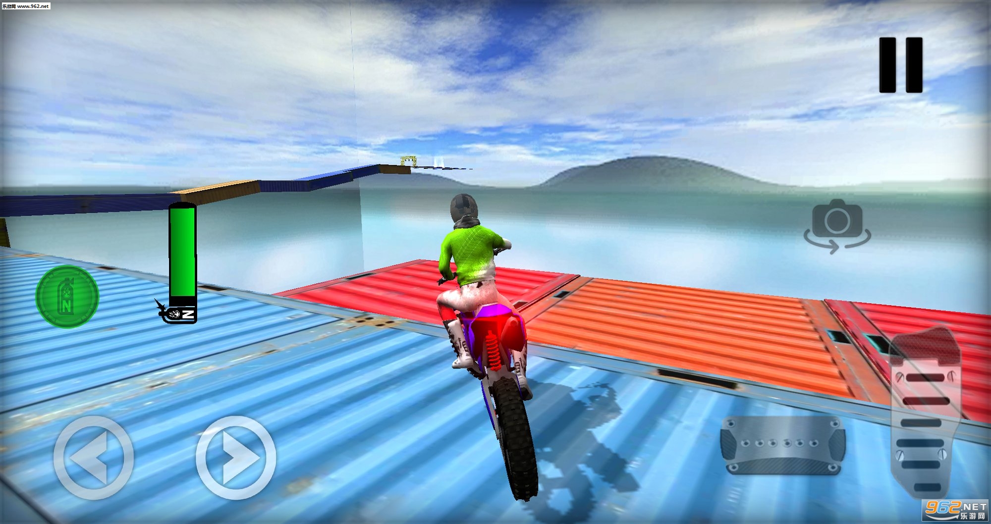 一款在天空之上进行的摩托车障碍挑战,大量集装箱组成的赛道上面有很多的陷阱机关,我们需要做的就是驾驶着摩托车安全的通过这里顺利的到达终点。在前进的时候要保持着警惕,因为你不知道前方有怎样的危险在等待着你。