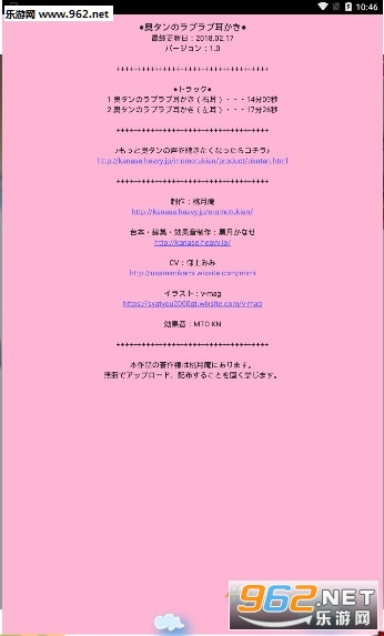 这是一款近段时间新出的ASMR手游,玩法简单,只需三个键;左边是回到原点,中间是开始暂停,右边是切换左右耳;大概内容是妹子在你身边撒娇什么的,日语听不太懂,但是妹子很软,还会帮你掏耳朵。
