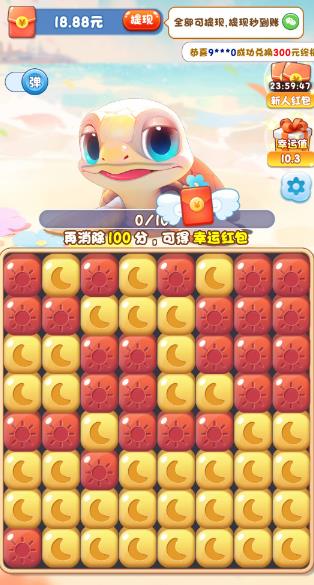 《疯狂大海龟》是一款以海底探险为主题的泡泡消除游戏,玩家化身海洋探险家,在神秘的海底世界通过消除泡泡解救被困的海洋生物。游戏不仅有丰富关卡和可爱的生物形象,还能让玩家在闯关过程中领取红包,登录、签到、完成任务都有奖励,满足玩家边玩边赚零花钱的需求。