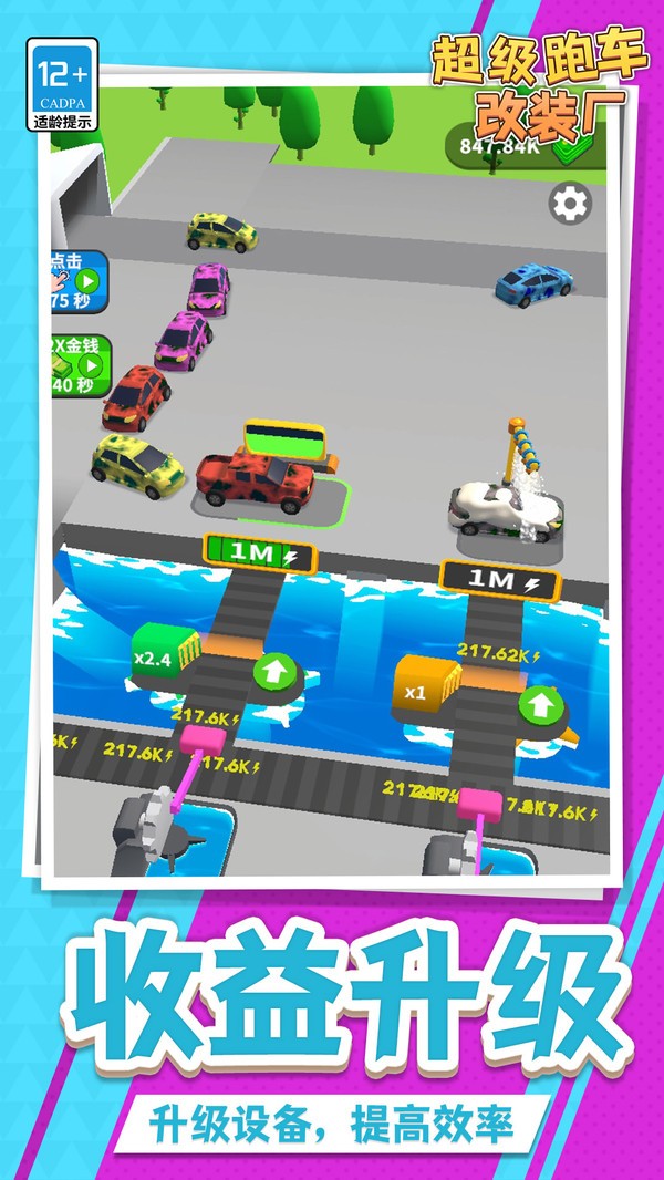 2、跑车改装经营为主题,融合收益升级与策略规划元素,让玩家体验从简陋工厂到行业巨头的经营乐趣。