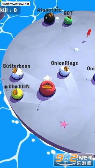 游戏画面采用卡通风格设计,有多种不同的场景地图,简单模型的操作,类似于球球大作战的玩法,多人同屏再现竞技,将对方碰撞致水里即可获得自身的增长,不断变大挑战高分获取游戏胜利。
