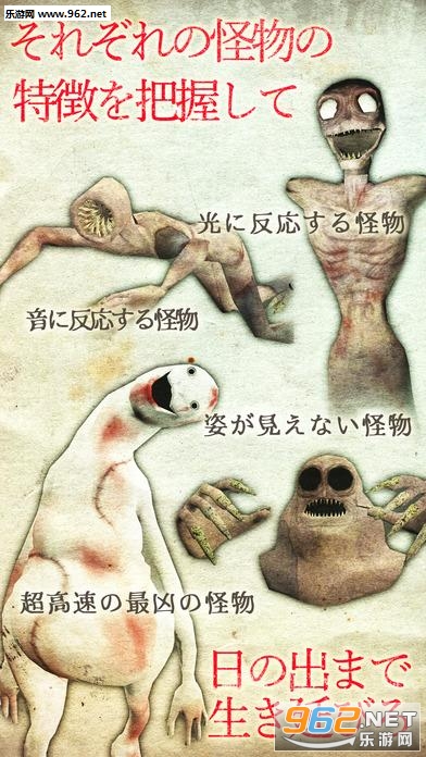 游戏中你需要在展开调查的同时注意随时可能袭来的怪物,它们能力各有不同有的是对声音有反应有的对光有反应有的还能隐身,总之想尽一切办法活下去,只要坚持到日出(游戏限定时间结束为止)就是胜利。