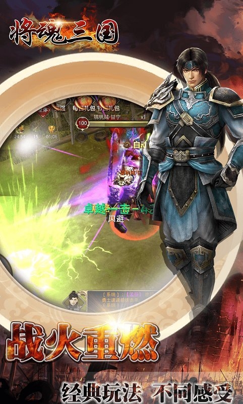三国题材的MMO游戏,游戏画面贴合三国故事画风,高度还原三国时期各个风云人物。佩戴不同的魂将,游戏内将会根据佩戴魂将的不同,变成不同的魂将外观。同时炫酷的全凭技能,无差别技能释放,熟知的三国武将登场,招募收集更多高级武将,多样的战场副本关卡,自由搭配武将策略布阵,开启征战三国。绚丽的翅膀外观、婀娜多姿的部将,也是游戏一大特色。游戏内的“演义”系统,高度还原三国时期最着名的几大战役,真实的让玩家体验到当时的战斗情景。