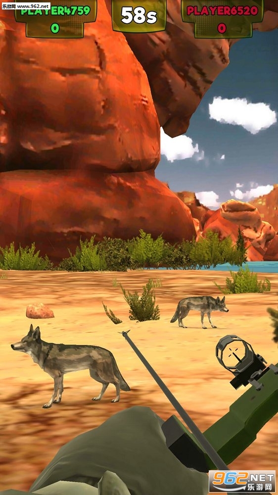 一款很真实的第一视觉射箭游戏,与玩家们在一个广阔的草原荒野来一场狩猎对决,看看谁的猎物最多,谁能将准星瞄准致命的部位,以分数来判定游戏的输赢,因为在于玩家对决时所下的佣金,而这笔金钱只会出现在获胜者的手中。很不错的一款拟真游戏,游戏中的动物模型还是很有趣的,它们随意地穿梭在你的四周,而你只能看着前方周围对它们进行爱的教育。