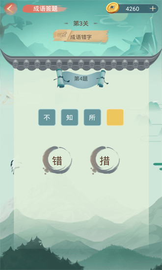 5、操作简单,你只需要将屏幕下方的字填进空格中即可,组成正确的四字成语。