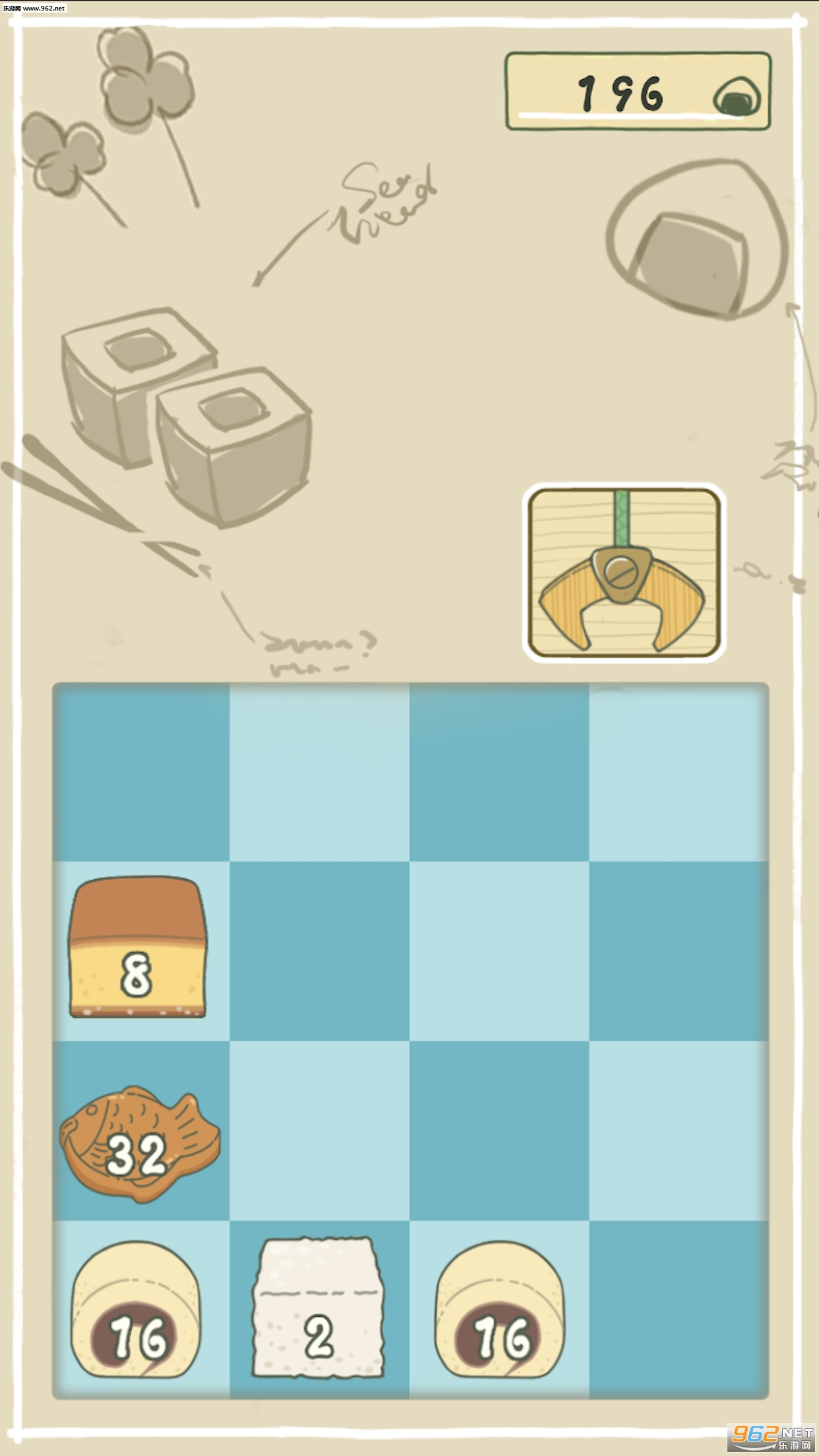 1、美食诱惑为主题的数字组合挑战,简单移动的游戏规则;