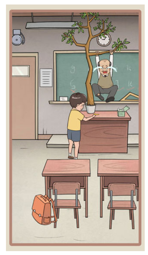 15、课桌子上有水,下边有花盆。把花盆放讲桌上,浇水,吃老师,即可。