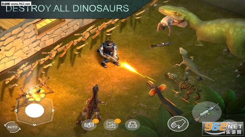 2、在3D的恐龙厮杀中生存下去,躲避猛兽的袭击,探索未知的区域;
