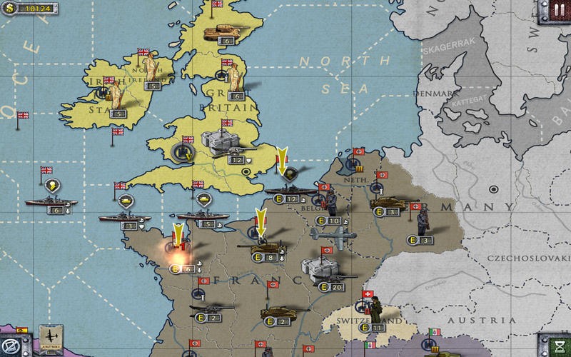 5.共有28个欧洲国家包括200多个陆地地区和海域,可以选择12个轴心国和同盟国进行游戏并享受多种游戏模式。