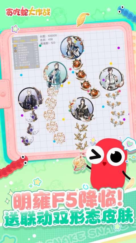 4、赏金模式中蛇身长度固定不变,入场时可以选择长度和携带的欢乐币,每局比赛10人,你有三分钟的夺宝时间,你的目标就是搜集更多的欢乐币,被击杀则会掉落头顶上拥有的所有欢乐币。游戏结束,欢乐币最多的玩家获胜。