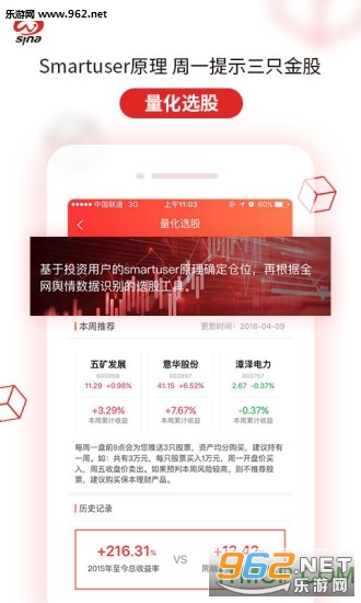4.股票入门:不同于钠镁股票、牛股王、灯塔股票、选股宝、腾讯自选股等,软件的【量化选股】每周一盘前为您推送3只股票;大盘、股市涨跌、预测、上涨、下跌、跌停,庄家股票、跟庄、庄股、牛股、选股、荐股、买股票、长线、短线等知识无需入门即可炒股。