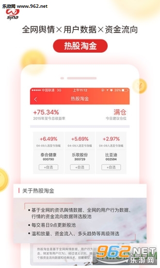 1.股市淘金:不同于大智慧、同花顺、雪球、东方财富、新浪财经等,软件的【热股淘金】每日9点更新股票池,实时追踪自选股行情,主力股票动向一目了然,建立安全的股票交易服务。解决投资者选股难,证券交易者资金短缺的问题。